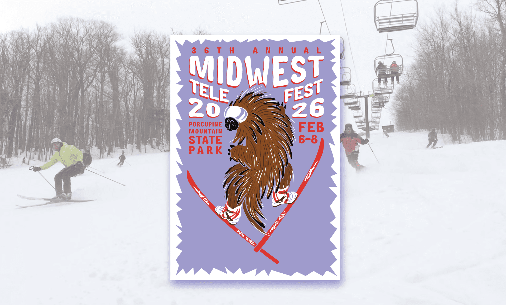 Commissioned poster and sticker work for Midwest Telefest, centered around Michigan’s Porcupine Mountains and the telemark culture that thrives there. These designs pull from the terrain, tree lines, and raw character of the Midwest ski scene. Built to capture the spirit of telemark lovers everywhere, the final pieces live both as collectibles and as a visual anchor for the event.