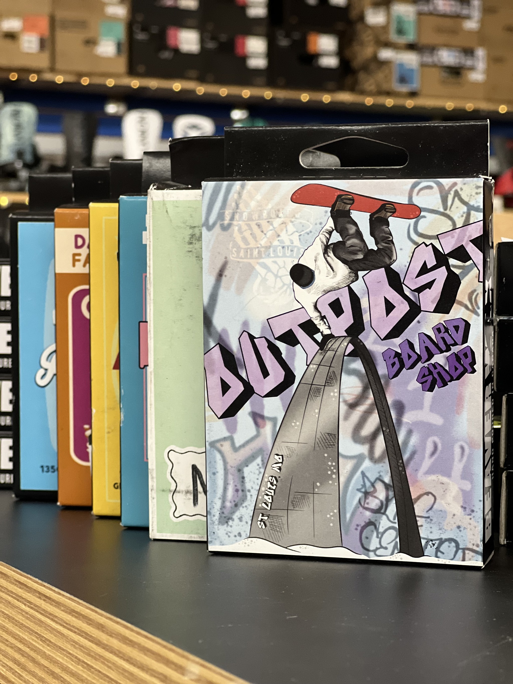 Built from the concrete and creativity of St. Louis, this illustration for Outpost Board Shop’s wax box taps into the raw pulse of local snowboard culture. Blending street-inspired textures with high-flying motion, the piece captures that moment where Midwest grit meets mountain dreams. It’s a nod to the riders repping St. Louis beyond the snow, carrying style, speed, and a little bit of chaos wherever they land.